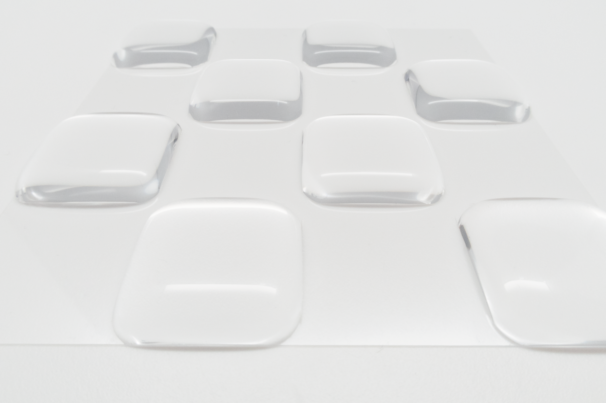 プラスチックボードに格子状の傷をつけ、傷と傷の間に水滴を垂らしたもの A PLASTIC BOARD WITH LATTICE SCRATCHES AND WATER DROPS HANGING BETWEEN THE SCRATCHES