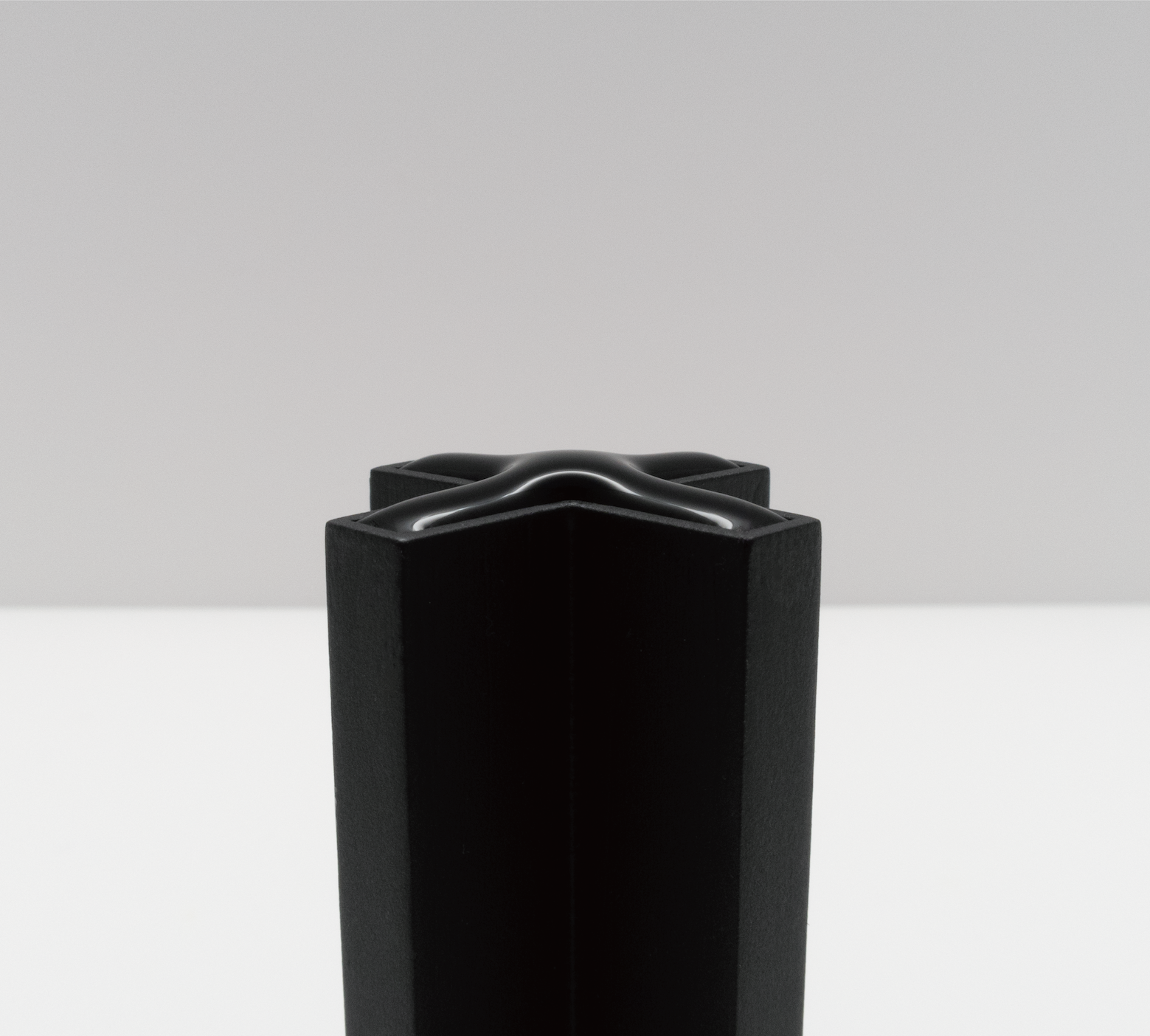 撥水スプレーをかけた十字型の器に水を入れたもの